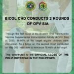 Polio outbreak officially closes in PH; Bicol CHD immunizes 78% of target against polio