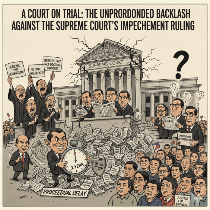 In the hallowed halls of Philippine law, the Supreme Court’s word is meant to be the final and unassailable truth. Yet, its recent decision to invalidate the House of Representatives’ impeachment action, citing the one-year bar rule, has not been met with quiet deference. Instead, it has triggered an extraordinary wave of denunciation from the very legal luminaries who have shaped our justice system. This is a rare moment in our nation’s history, where the highest court finds itself squarely on trial in the court of legal opinion.