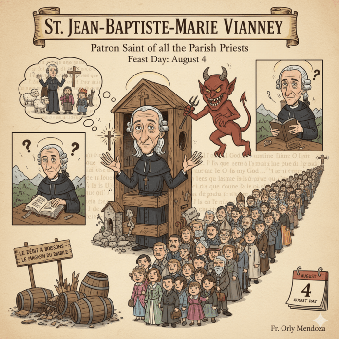 The Holy Curé of Ars, as St. John was known, was renowned for his love of mortification and the Sacrament of Confession. He practiced severe mortification, eating and sleeping less than his body needed to survive. He spent between sixteen and eighteen hours daily in the confessional, especially during his last ten years of ministry. People from all walks of life—including some religious brothers and sisters, priests, and bishops—flocked to his church just to seek his advice and receive forgiveness through Confession. He was constantly troubled by demons but successfully fought them through prayer and mortification. He died on August 4, 1859, at the age of seventy-three.