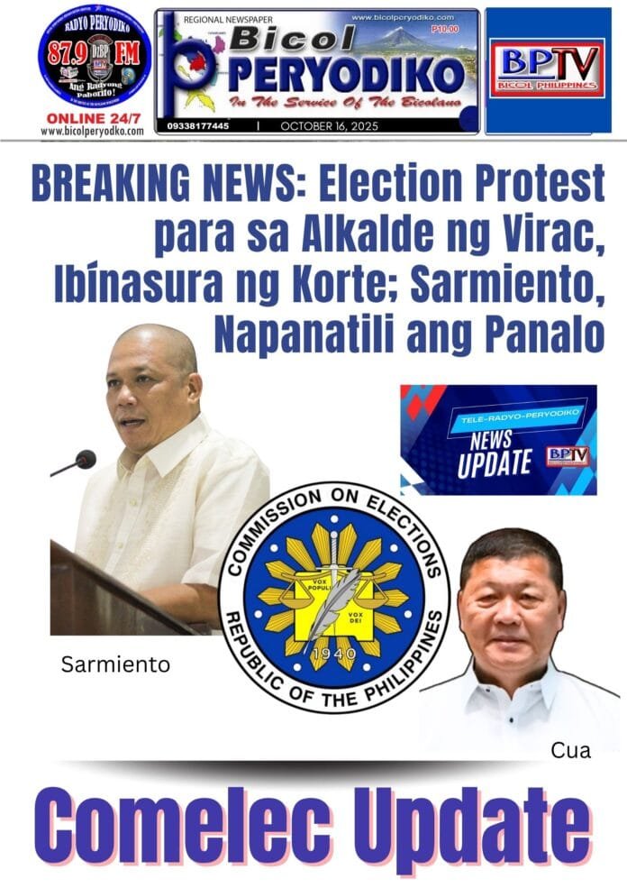 Virac, Catanduanes — The Election Protest challenging the results of the May 12, 2025 local elections for the position of Municipal Mayor of Virac, Catanduanes has been DISMISSED by the court.