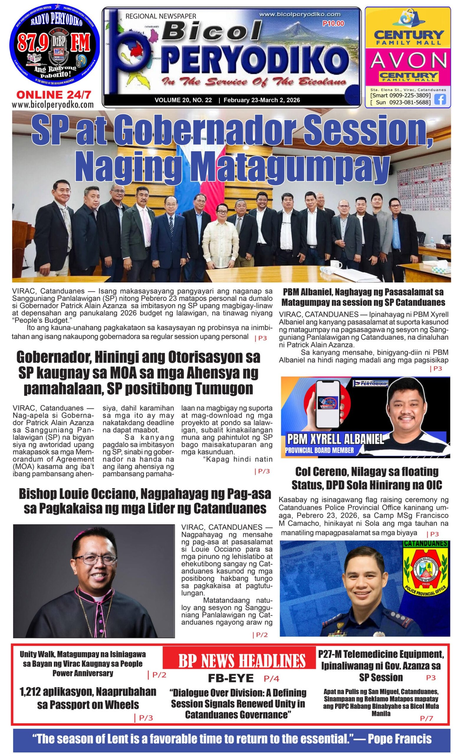 VIRAC, Catanduanes — Isang makasaysayang pangyayari ang naganap sa Sangguniang Panlalawigan (SP) nitong Pebrero 23 matapos personal na dumalo si Gobernador Patrick Alain Azanza sa imbitasyon ng SP upang magbigay-linaw at depensahan ang panukalang 2026 budget ng lalawigan, na tinawag niyang “People’s Budget.”